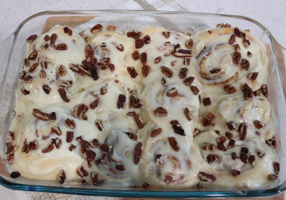 Pecan-Topped Cinnamon Rolls w/ Cream Cheese Frosting