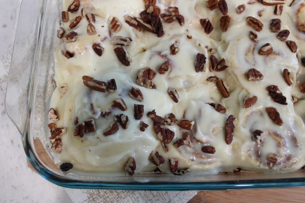 Pecan-Topped Cinnamon Rolls w/ Cream Cheese Frosting
