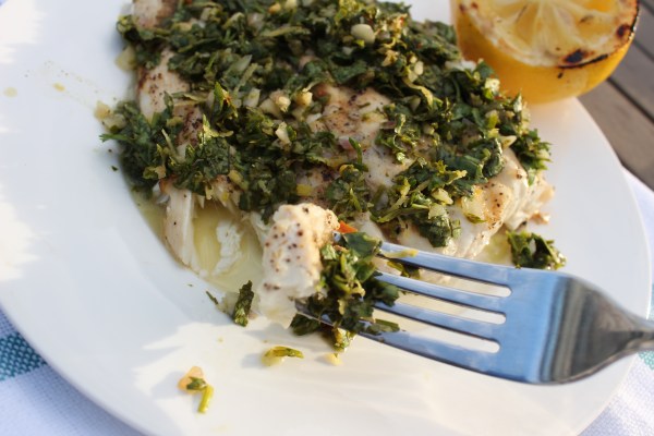 Grilled Halibut w/ Cilantro Lemon Gremolata
